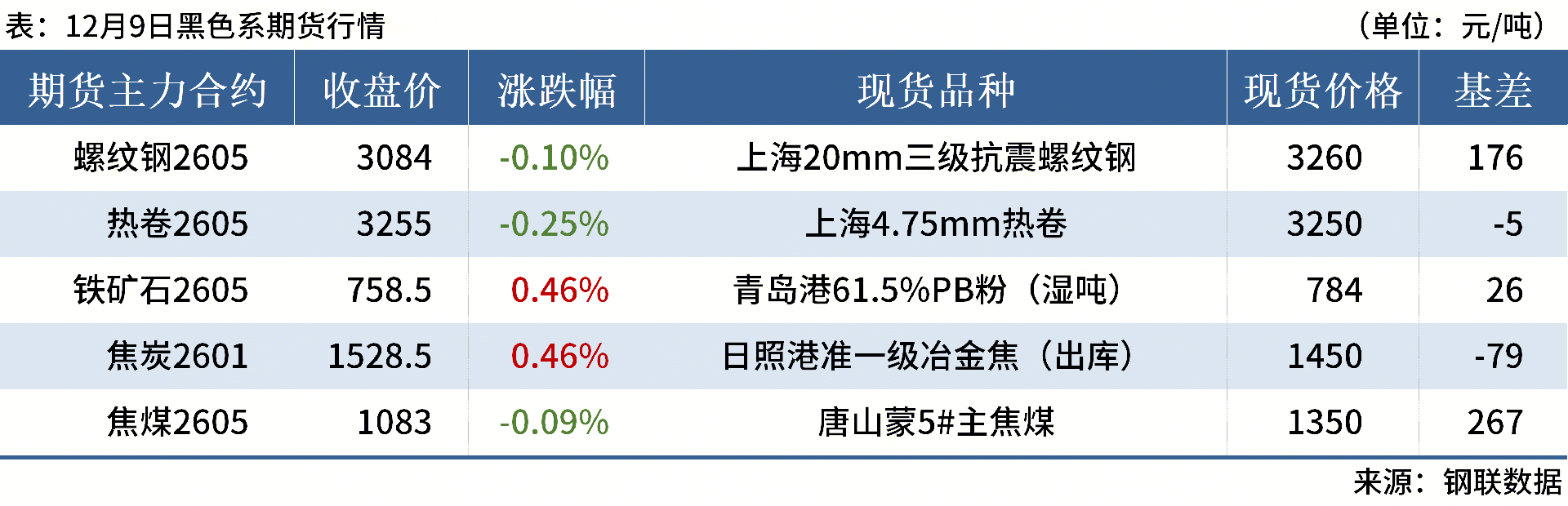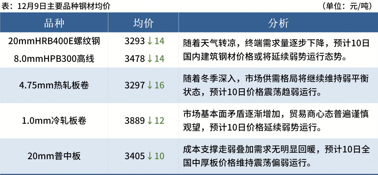 ◎ 12月9日,全國主港鐵礦石成交113.70萬噸,環(huán)比增1.2%;237家主流貿(mào)易商建筑鋼材成交9.26萬噸,環(huán)比減8.9%。