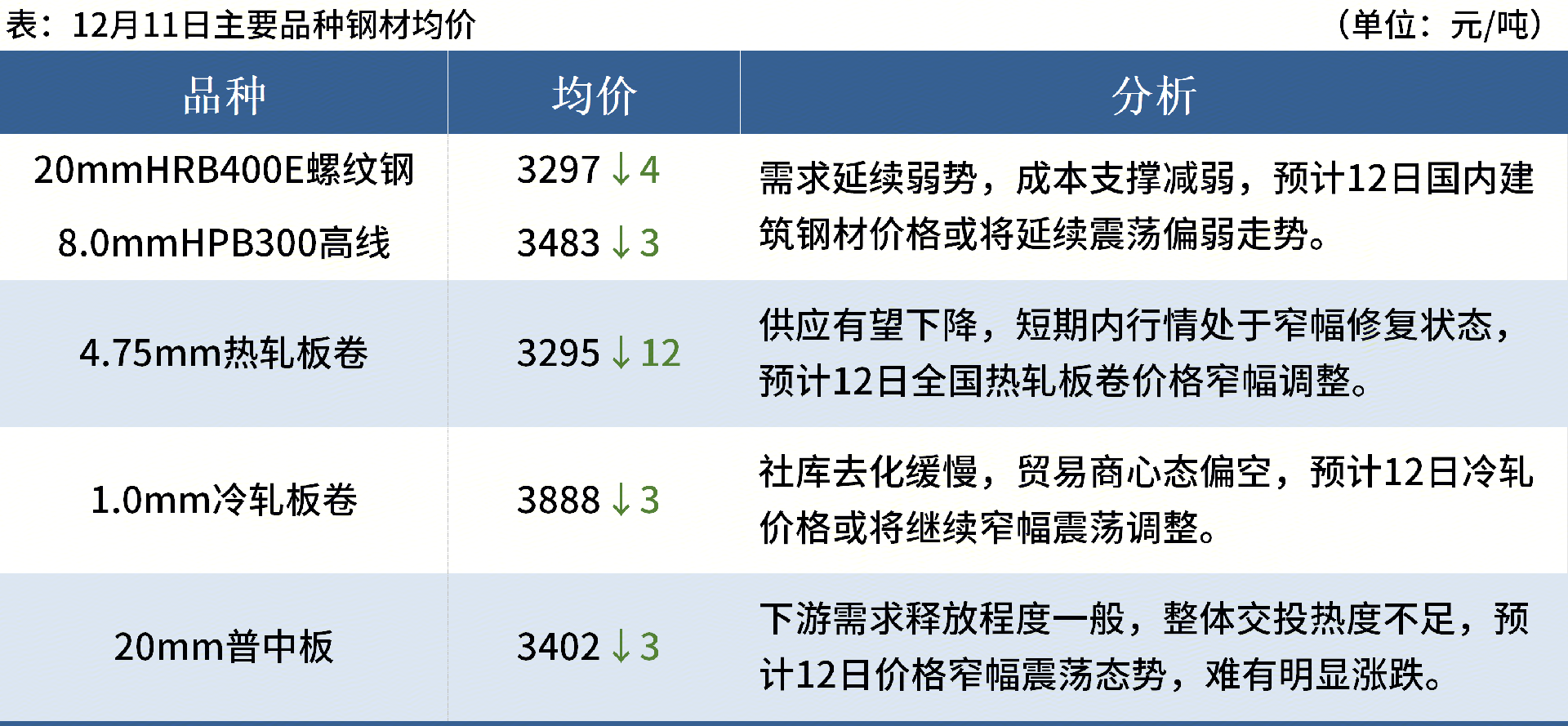 ◎ 12月11日,江蘇沙鋼廢鋼采購價格下調(diào)30元/噸,調(diào)后車運(yùn)價格:重三含稅2360元/噸,爐一含稅2440元/噸。
