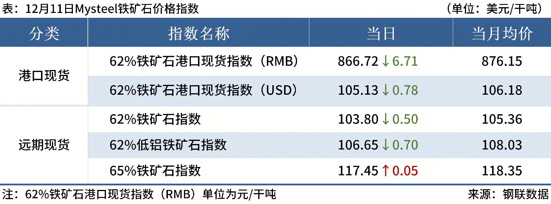 ◎ 12月11日,全國主港鐵礦石成交99.10萬噸,環(huán)比增38.6%;237家主流貿(mào)易商建筑鋼材成交9.22萬噸,環(huán)比減19.3%。